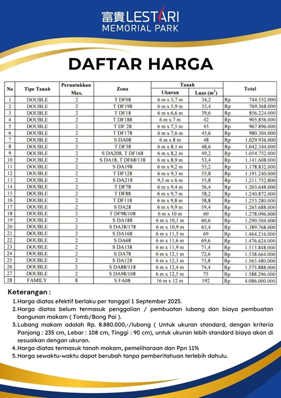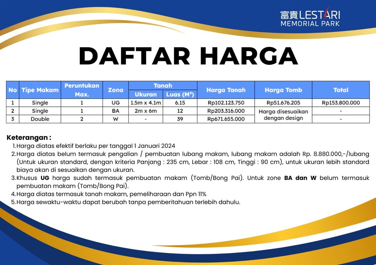 Jadi lakukanlah persiapan selagi anda bisa dan mampu, Karena kesehatan masih memungkinkan dan finansial anda mendukung agar tidak menyusahkan anak cucu yang ditinggalkan, dan Anda memiliki peristirahatan terakhir yang sesuai dengan keinginan Anda sendiri.